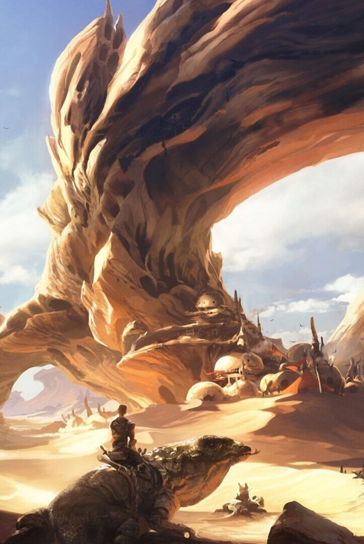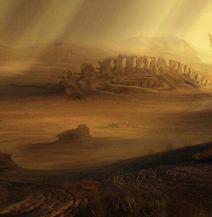 Comprising the core of the Wastes, the Sand Barrens are a vast stretch of sand dunes that are believed to be an ancient lakebed. Seemingly unremarkable beyond the vast emptiness of the sands, the Barrens are where the tribes calling themselves the "Worm People" have decided to make their settlements. Where empty sands may stretch out for malms before you, beneath your feet may yet hold hundreds of lives as the Worm People toil away to build their settlements in the carcasses of ancient worm tunnels.General wisdom states to avoid the Sand Barrens. Any time you may gain for its crossing may not be worth the price paid. From massive prowling worms beneath the sands, to the horrifying flesh eating sand mites, or to simply fall into a pitfall to bake alive in the sun for what salvage you may offer, the Sand Barrens offer many unique hazards to those who dare brave the shorter path.
