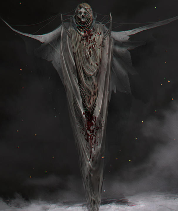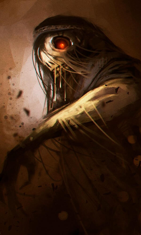 Men. Creatures not of the land. Beings who walked with defined forms, who stirred and broke against the harsh inhospitable lands. Centuries had passed since the last corporeal life was seen. From whence did they come?One wraith took great interest in these new beasts, casting it's mind far into the distant past to remember the time of plenty when it took shape of beast and bird and tree. These beasts who walked upon two legs seemed to endure these lands where all others had failed. And so the wraith watched, struggling to remember life as a solid being.Until one day, a lost child had wandered into a cavern during a vicious sandstorm. Blind and half faded, the child groped and cried in the dark of the Wraith's den. Its faded and ephemeral form remembered where it's mind did not and shifted to take solid shape. Where once was open air came a being of immense height. It stood upon two thin legs and bore two too-long arms. Its pale bloodless face bore no features, a smooth surface from which no hair, nose, or mouth, bearing only two black holes where eyes should be.A horrifying sight to behold, when delving into the unknown. But blinded and lost as the child was, it had no choice but to trust this strange silent man of the cave. Cautiously, the Wraith led the child to water and used what energy it had to care for and mend its wounds. Other time, sight returned, and soon after, trust. The Wraith first among the rest of its race, loved the creatures of the world. It alone understood them more than it understood itself. Thus in the days that passed, it learned to use the sound of wind, the echo of stone and water to mimic the speech of this child.Days passed and the child was now well enough to make the journey back. The Wraith did not stop it, but watched the curious thing walk upon its legs and fade from sight. The child left the Wraith to return to its solitude, but with it was carried the story of the strange healing spirit of the caves.Days after more men came into the Wraith's den. Seeking to give thanks for the return of their child. These men did not flee upon the Wraith's manifestation, rather they knelt in supplication. These Men thus called this entity 'Al'vain', emissary of the land. Thus began the covenant, between man and the multitude of Wraiths that they had come to name 'Immortals'.